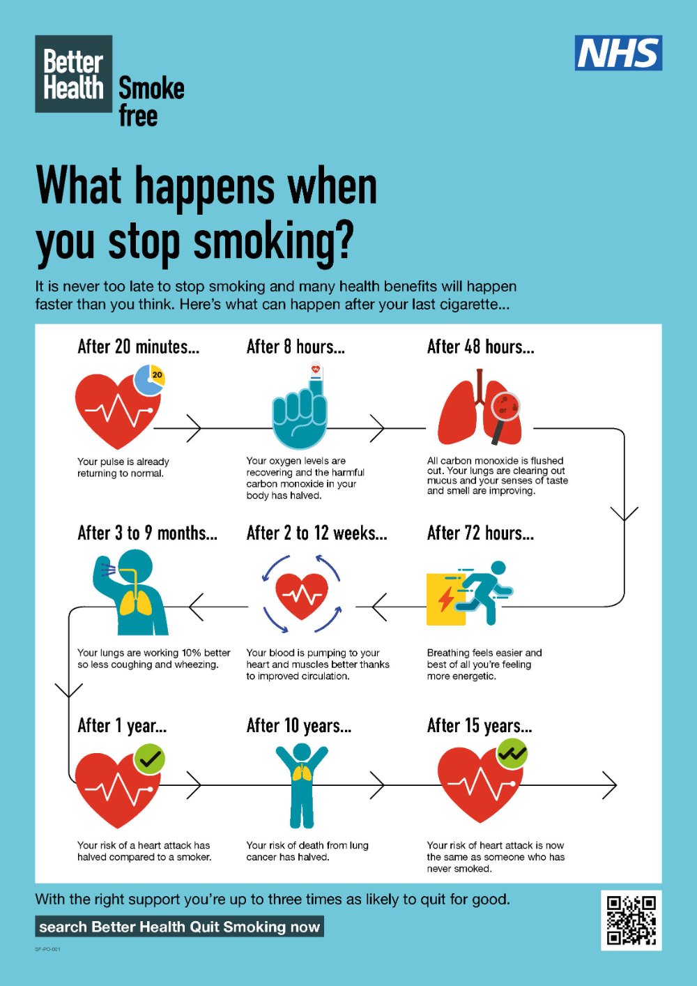 There’s a wide range of free quitting tools available, including the NHS Quit Smoking app, the Personal Quit Plan, expert support from local stop smoking services and a Smokefree Facebook support group. There's also lots of information about aids such as nicotine-free medicines, nicotine replacement therapies and vaping, available at nhs.uk/better-health/quit-smoking. Together, we can do this.